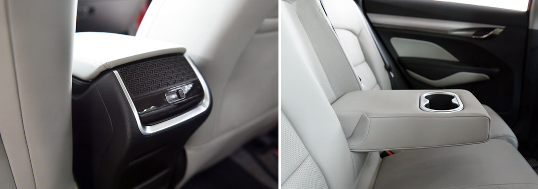 而值得一提的是它的后排配备了三个独立头枕、中央地板的隆起不高,而它没有配备后座出风口,取而代之的是一个USB充电接口。