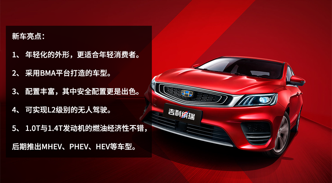 QQ、长城C30、帝豪,过去10余年,10万内国民轿车几经易主,尽管如今已经是SUV的天下,帝豪依然红红火火。帝豪、新帝豪、帝豪GL,它自己也在不断变化,直到近期才算是扎下了根,吉利这个级别的车终于有了属于自己的统一平台——BMA模块化平台,而吉利缤瑞,就是这个平台的首款产品,未来吉利的A0到A+级车,不管是轿车还是SUV,都将出自此处。