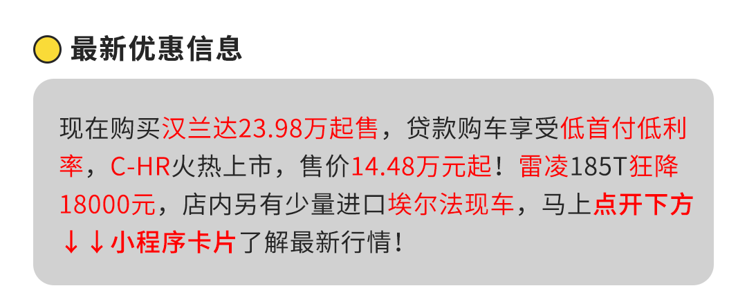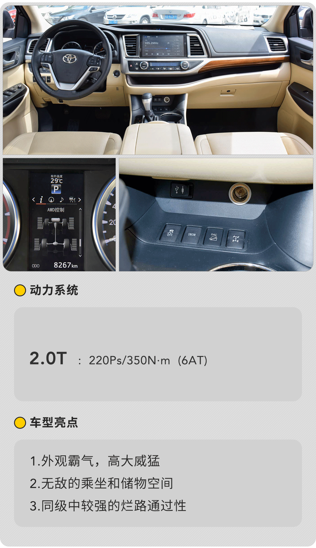 适合人群:如果您需要一辆大空间7座车,同时偶尔还要走走烂路,那么汉兰达就最适合您了!