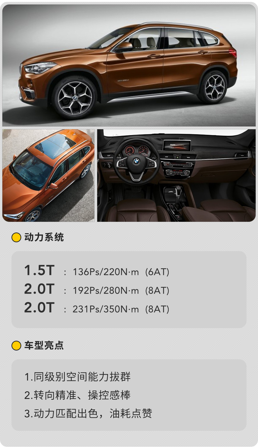 教授一句话点评:花费27万左右就能拿下裸车,30万就可以落地2.0T的宝马SUV,既能圆豪华车梦又能拥有大空间享受,选择它定不会有错。