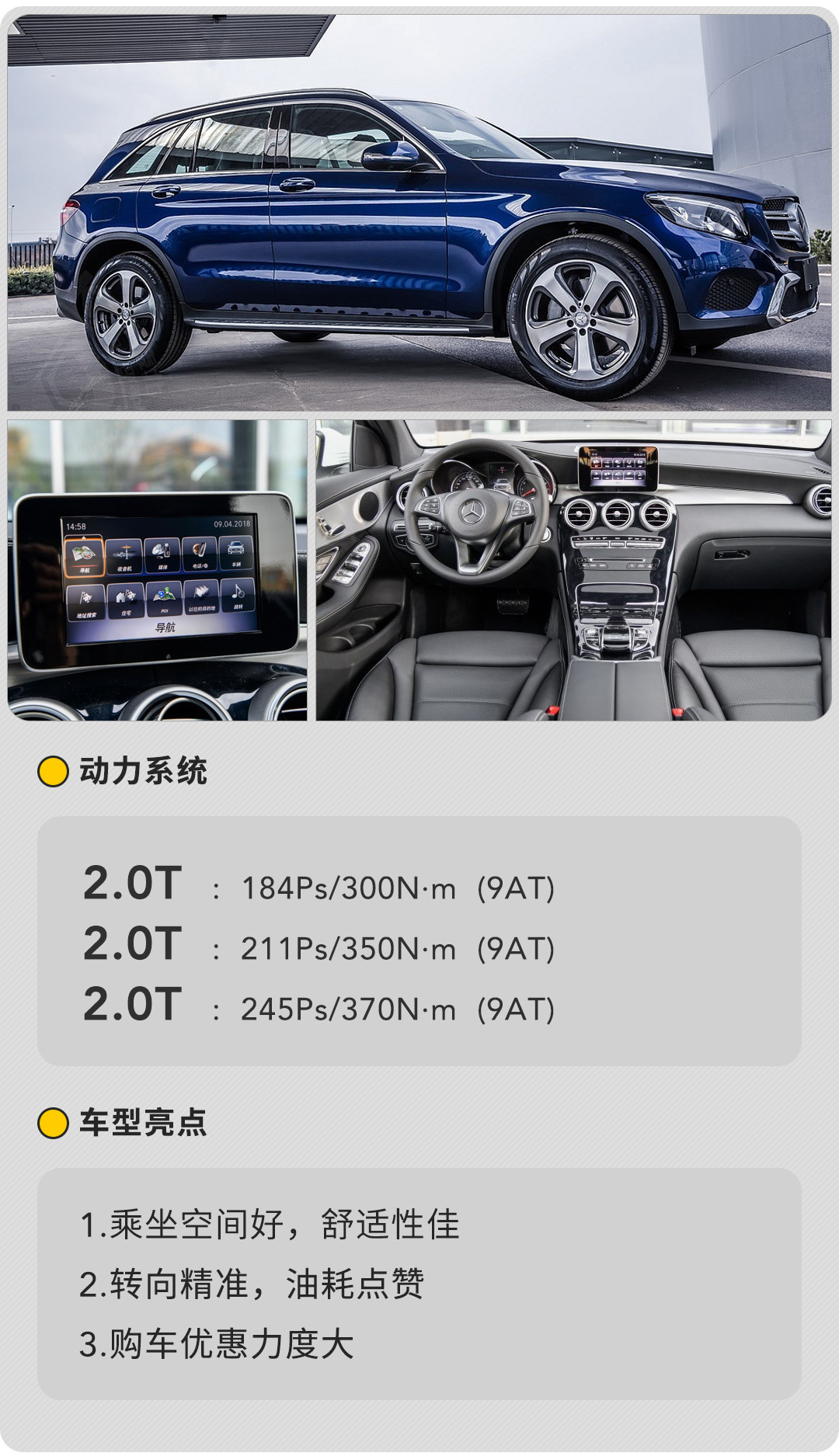 教授一句话点评: 奔驰GLC作为GLK的换代产品,除了有了更能吸引消费者的颜值和配置,同时营造出了同级别少有的内饰豪华感。