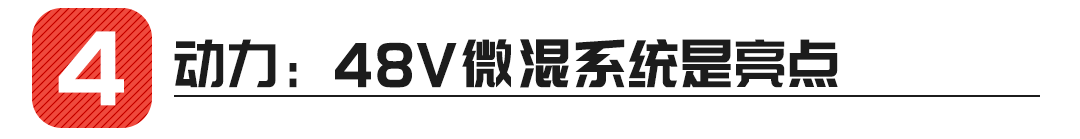 48V微混系统相比传统12V车载电源有更多优势,例如48V系统能在汽油机熄火状态下承担更多的车内用电需求,这样自动启停开启,停车状态发动机熄火以后,夏天空调依然能够制冷,舒适又省油,而传统12V电源此时就只能吹常温的风了。此外,既然是微混,那么48V系统由于有电动机辅助,自动启停开启后,低速行驶顿挫感更小,舒适性更好,更不容易察觉到发动机的启动介入。