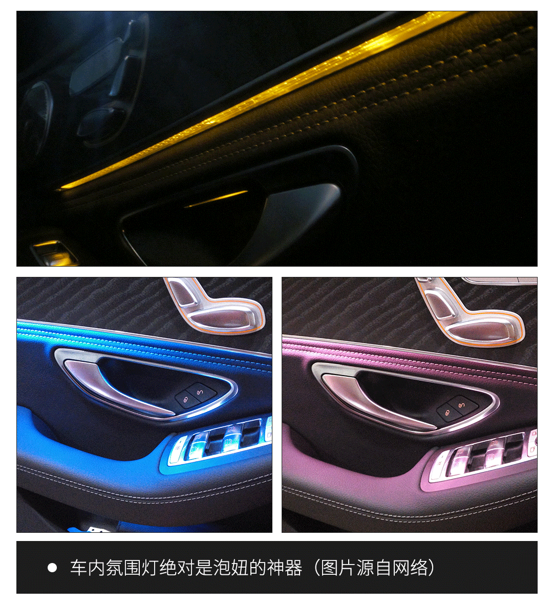 车内氛围灯从老款的3色升级为了64色,这个配置简直就是营造情调氛围和专门用来哄女孩子开心的泡妞神器呀!