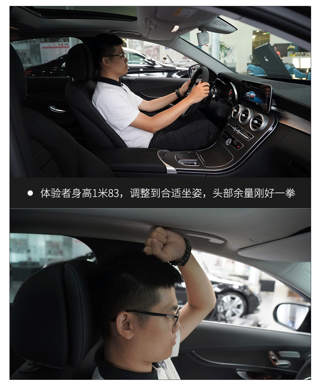 新款C260L的前后排乘坐空间与老款保持一致,考虑到体验者身高达到了1米83,这样的空间表现可以说十分出色,同级别数一数二!不过前排可伸缩腿托仍然是手动调节而不是电动,比较可惜。