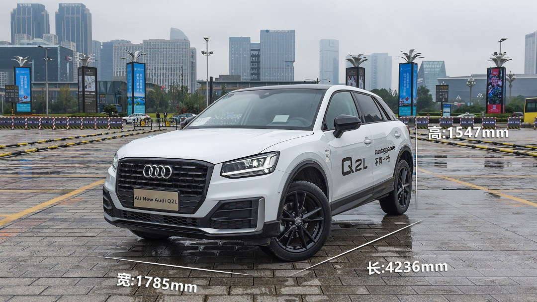 首先我们看尺寸,要知道它的定位小型SUV,在跟同为小型SUV的竞品相比有优势至于,甚至可以跟高一级紧凑型作对比了,这一加长让级别之间的区分变得模糊。加长后让Q2L具备了越级的潜质,而且为了为车内腾出更多空间,前后悬的长度是经过缩短的,所以可以看到四个轮是比较往车身四角靠的。