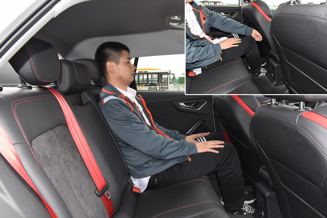 教授请来身高为1.8米的体验者,在调整好驾驶坐姿之后,后排的退步空间有一拳,头部空间有些许余量,大体上是够用的。