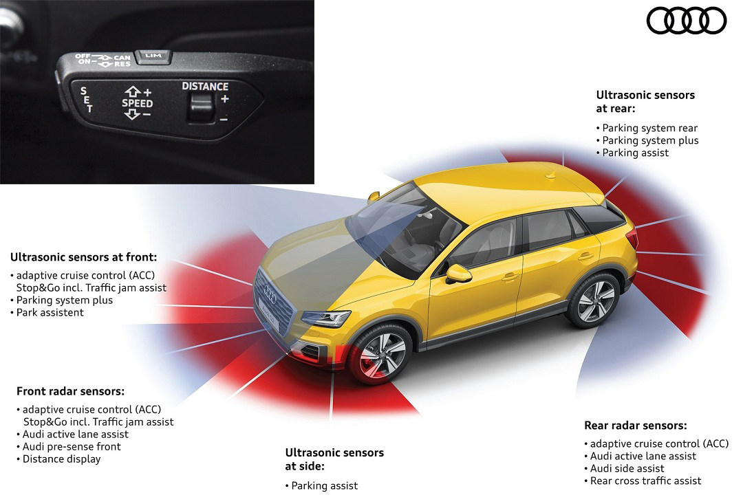 当然科技的表现也并非停留在视觉上,也体现在实打实的安全和驾驶性能上,即便是门槛最低的SUV,Q2L也全系标配了主动安全系统,可以实现辅助刹车,能够识别行人并辅助刹停,而且还具备车道保持功能,这样的配置水平真的值得点赞。