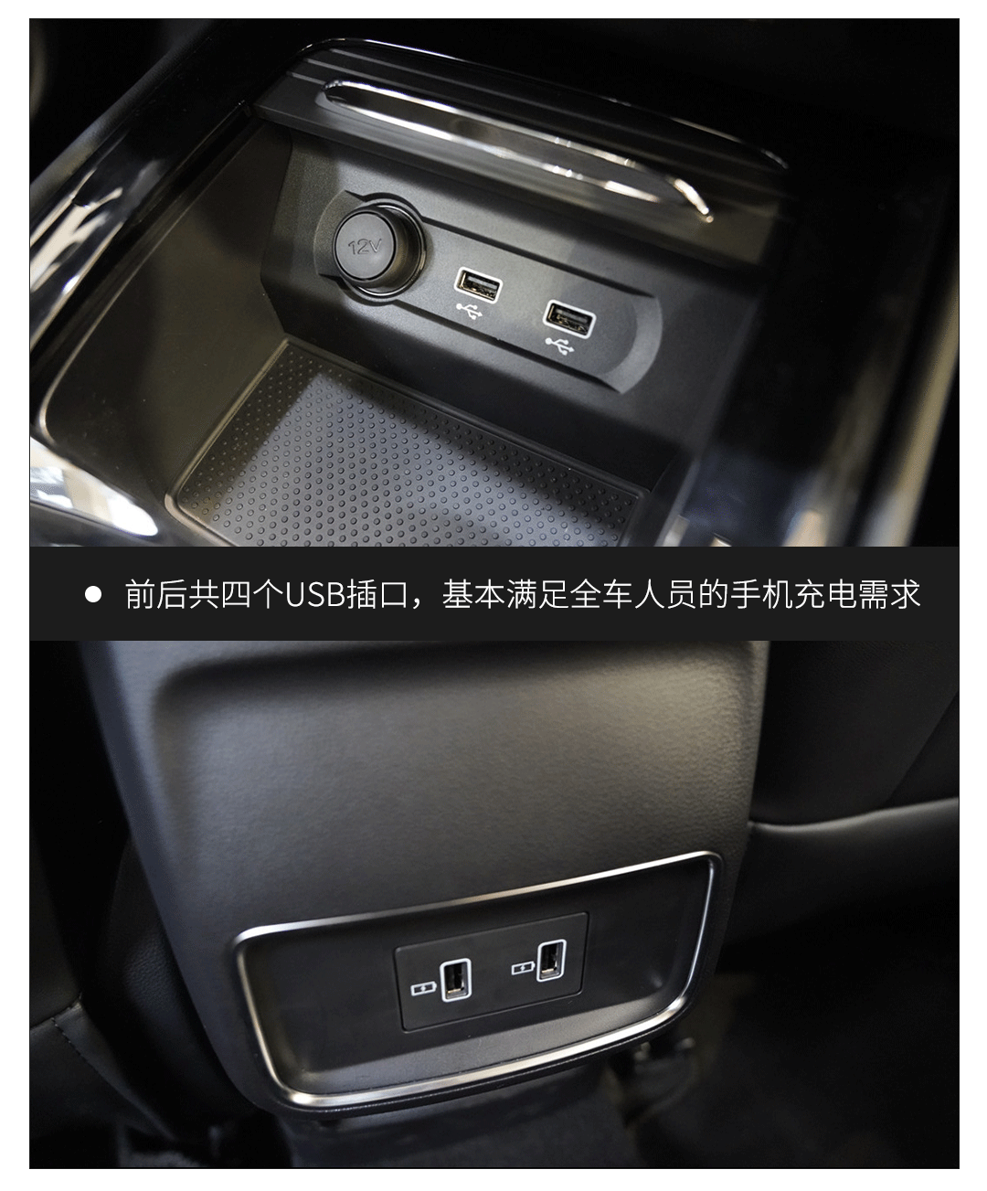 另外比较值得一提的是,荣威i5全车共提供了4个USB插口,而且在中国,5座三厢轿车座4人出行最常见的情况,这样车上的每个成员的手机都可以同时充电,不用像以前的车型那样要抢着了!