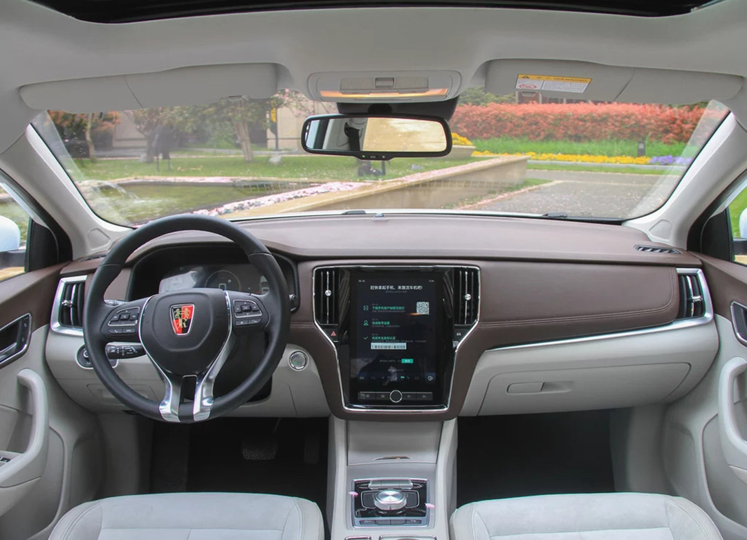 米棕的色调搭配,与人体高频接触的位置都用了软质覆盖,搭配缝线的设计为车厢营造了不错的档次感。配备了12.3英寸全液晶仪表以及10.4英寸内嵌式中控大屏,搭载于上面的斑马智行系统给人以良好的语音交互体验,以互联网体验为噱头的荣威没有让人失望。旋钮式换挡是该级别不常见的配置,金属的质感让其豪华感又添几分。