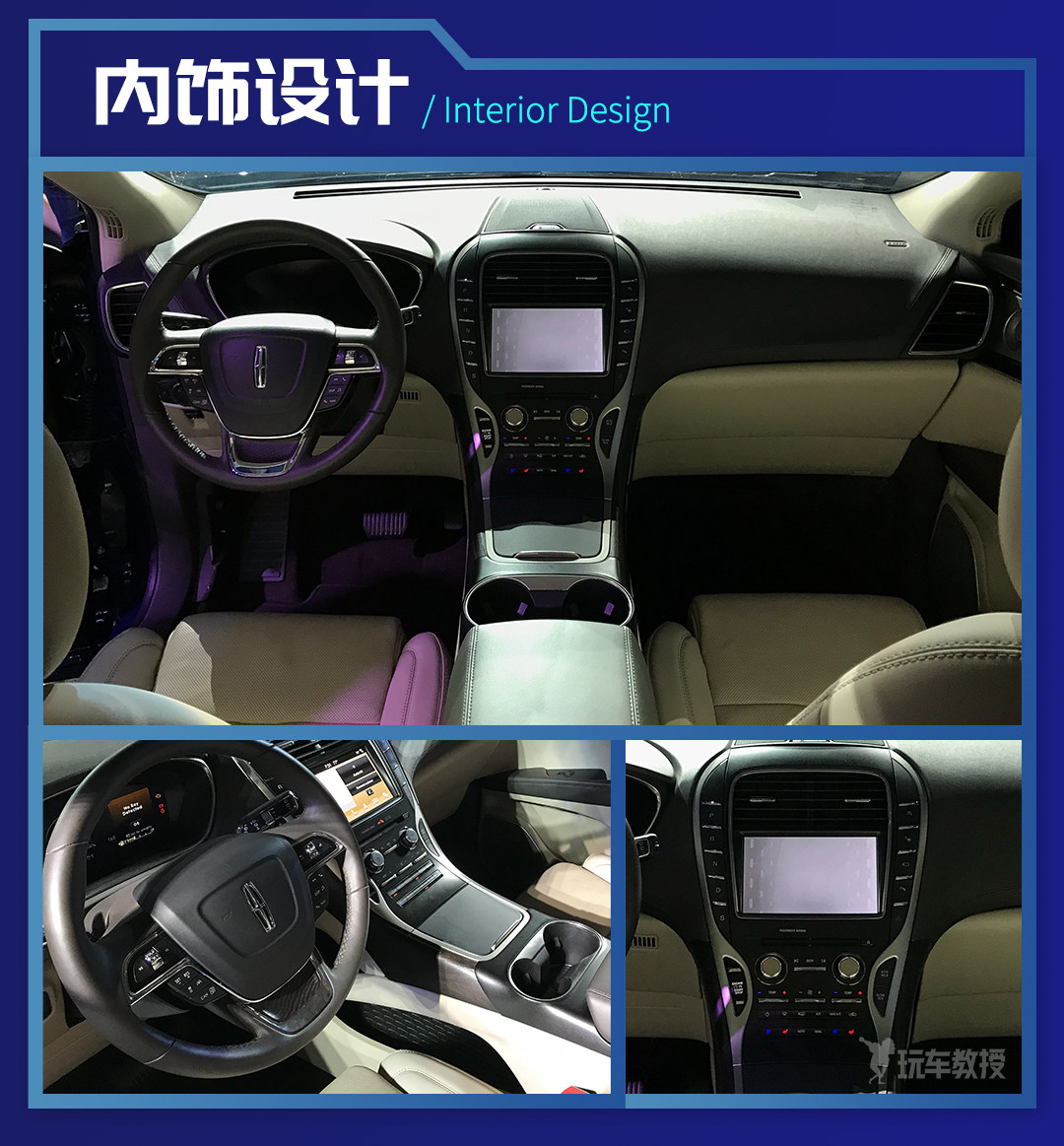 航海家的内饰设计并没有像外观一般大刀阔斧地动工,整体功能区布局依旧延续了MKX车厢内的形式,按键式的换挡机构今日看来依旧新鲜;全新样式的三辐式方向盘和符合潮流的全液晶仪表盘便是航海家相较于上一款MKX最大的内饰变化。
