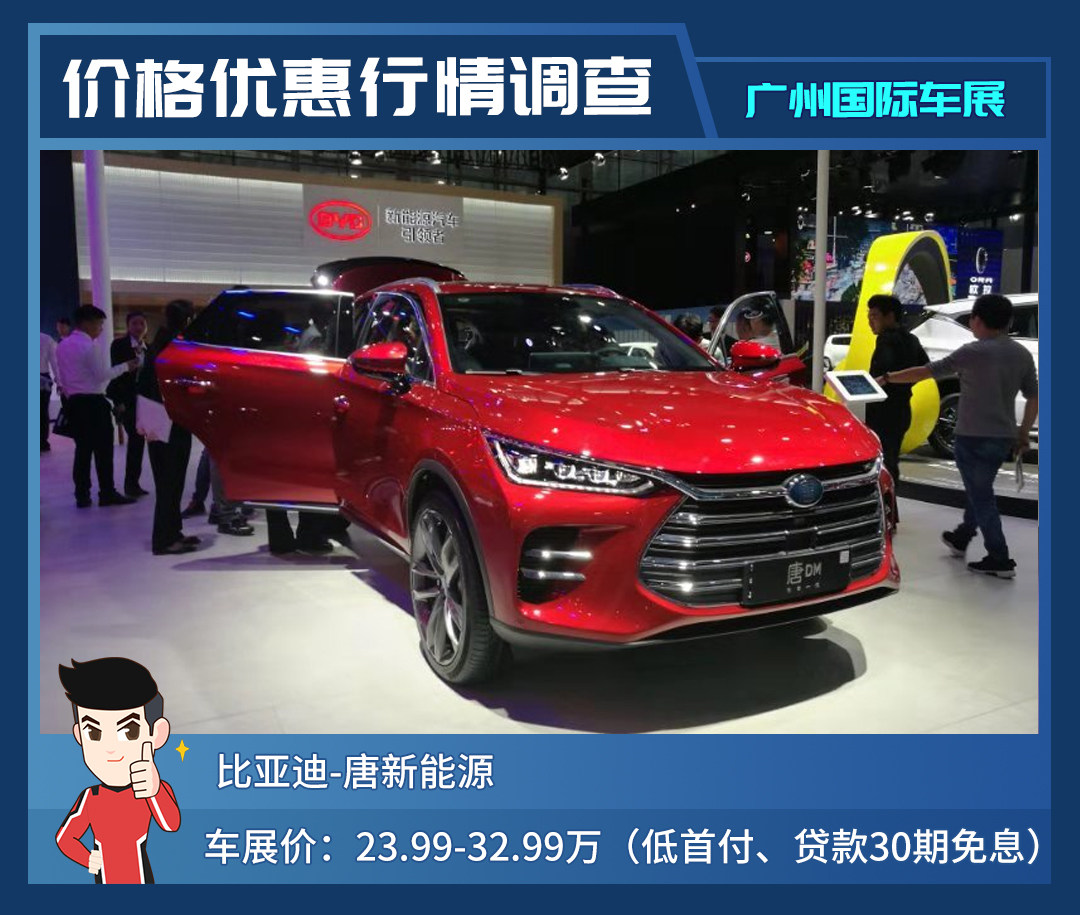 比亚迪唐新能源车型在广州车展期间推出了3.75万元起的低首付、贷款最高30期免息的购车方案,而且购车置换补贴为1万元!