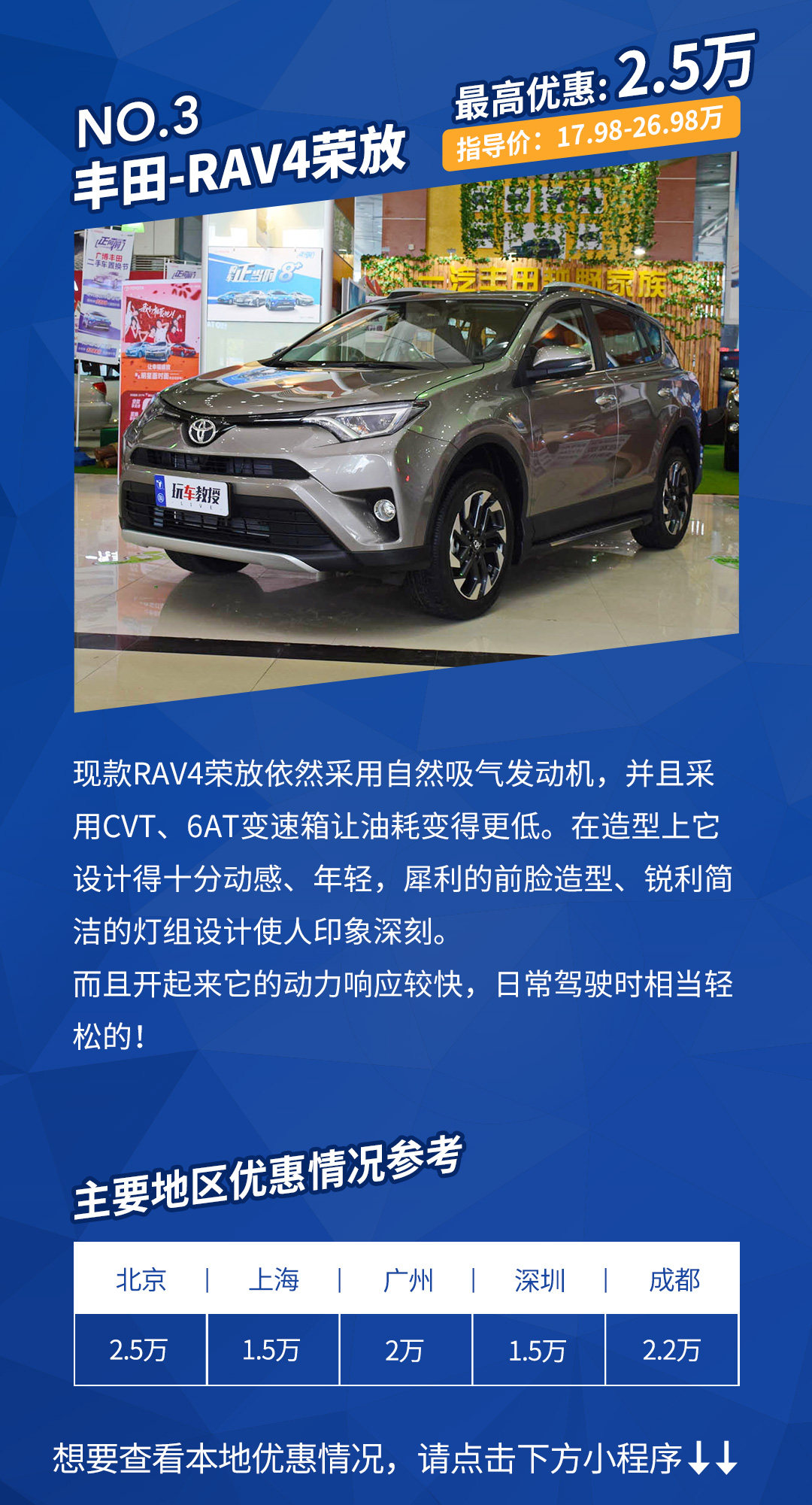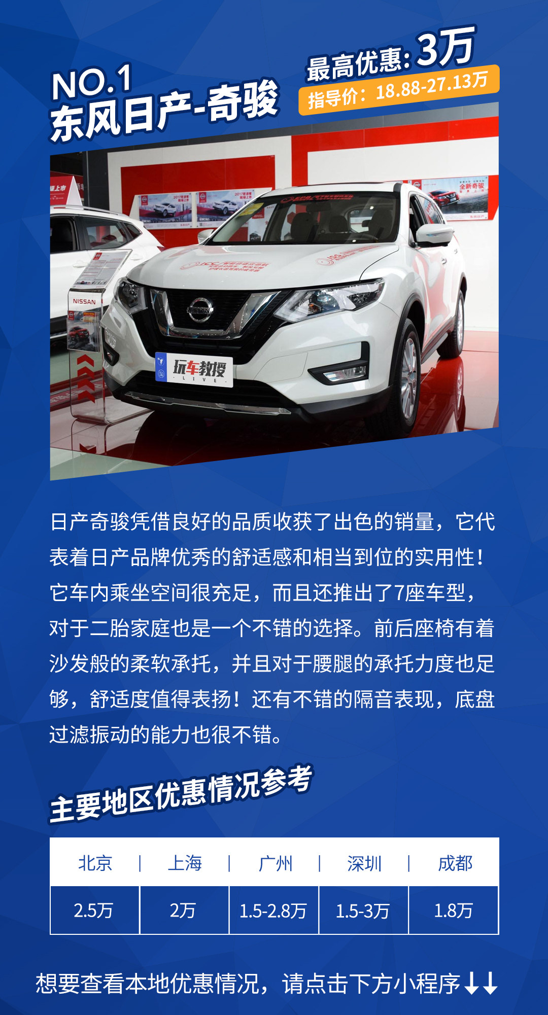 优惠详情:在北京、广州、深圳地区只需要店内上保险、店内贷款,上海、成都地区为现金优惠。