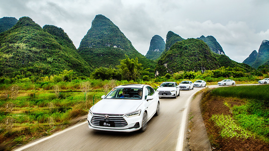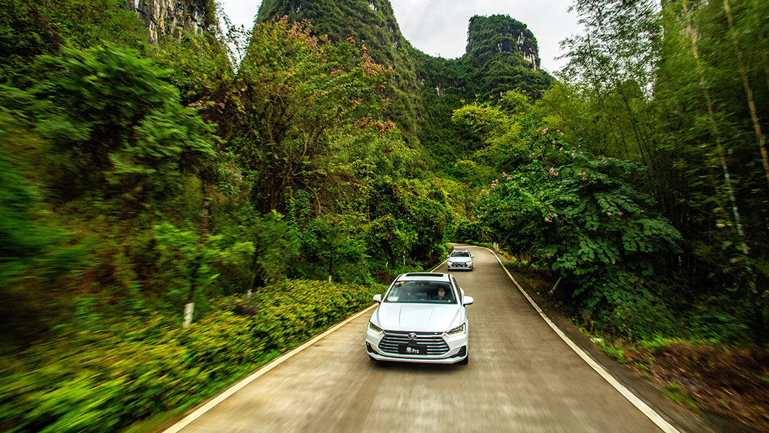底盘方面,秦Pro采用了该级别常见的前麦弗逊后多扭力梁式悬架,行驶在桂林的乡村小路间,遇到一些小坑小洼它会用振动如实告诉你,但对于较大的起伏又能灵活化解,这前段-后段底盘调教兼顾了路感以及舒适性要求。转向相当轻巧精准,长途行驶又或者城市使用中十分惬意。