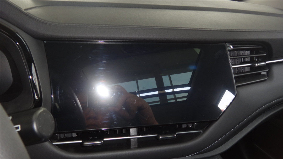 中控屏幕尺寸非常大,无边框的设计也很酷炫,不过日常驾驶可能会有反射阳光刺激驾驶员眼睛的问题。