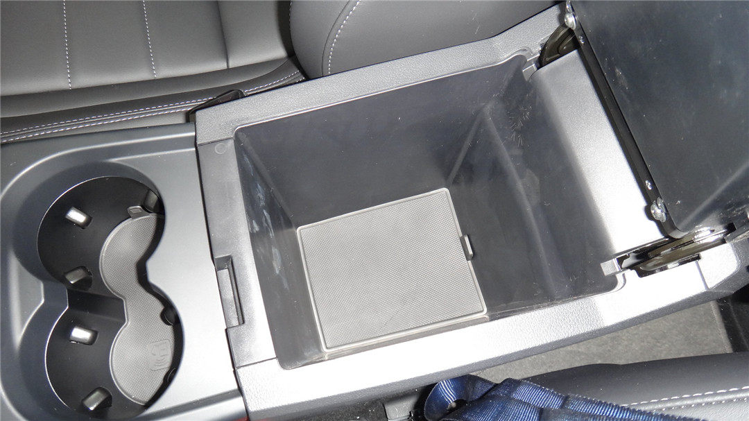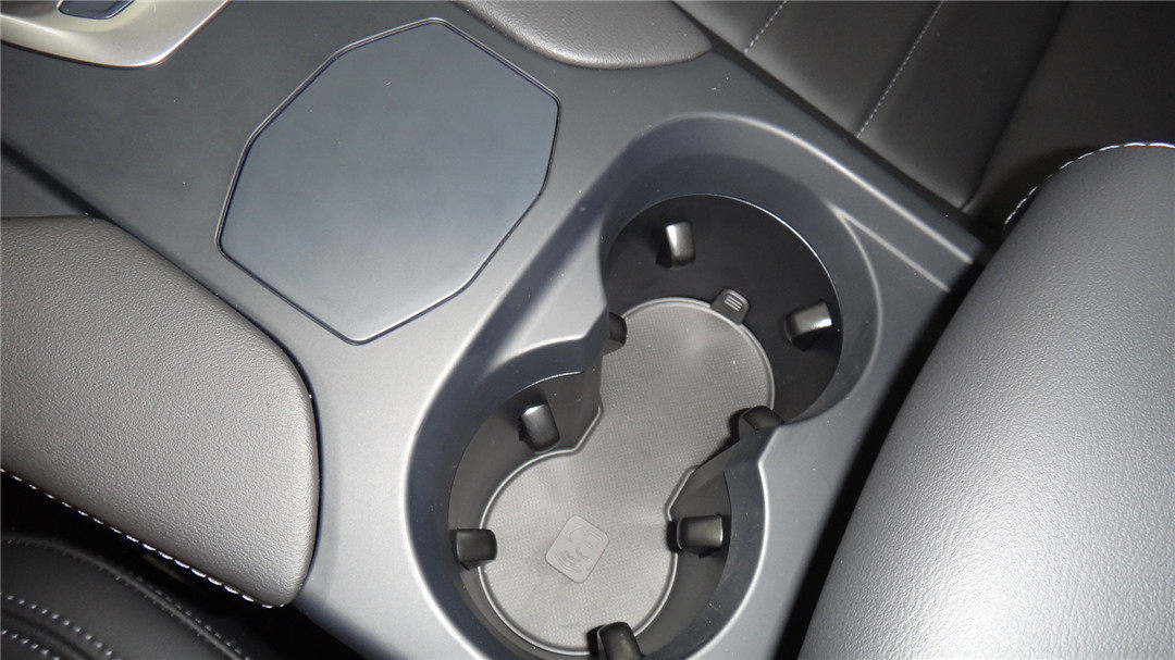 档把后方是杯架,而杯架前方的多边形盖板上空空如也,高配车型在这里是中控多媒体系统的旋钮和按键。