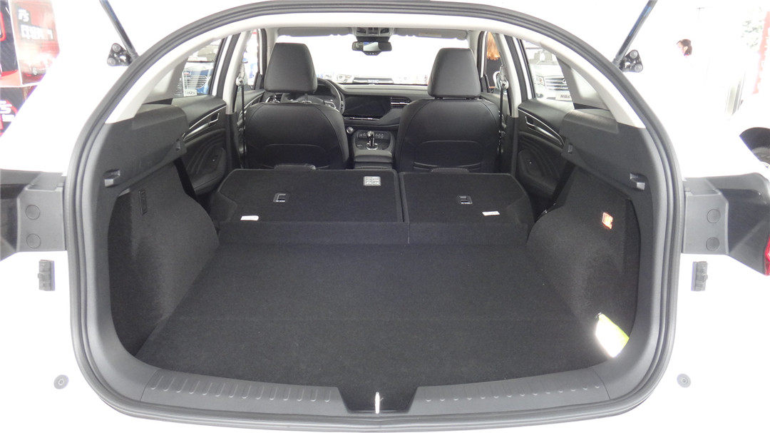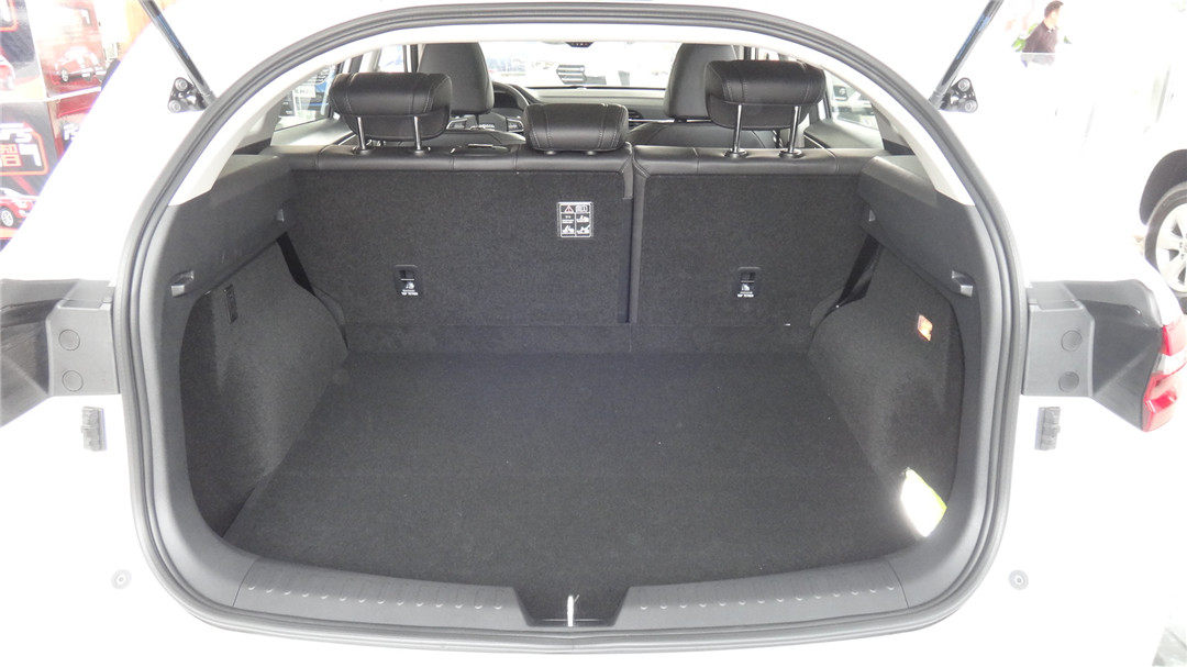 尾箱横向宽度和深度足够,纵向高度一般,第二排放倒后接近全平,只不过尾箱开口太高,对于搬放物品不太友好。