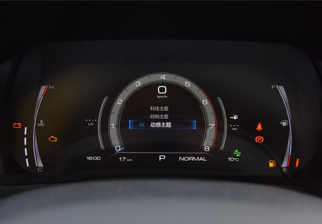 仪表盘是全液晶的,可切换科技、时尚、动感三种主题。