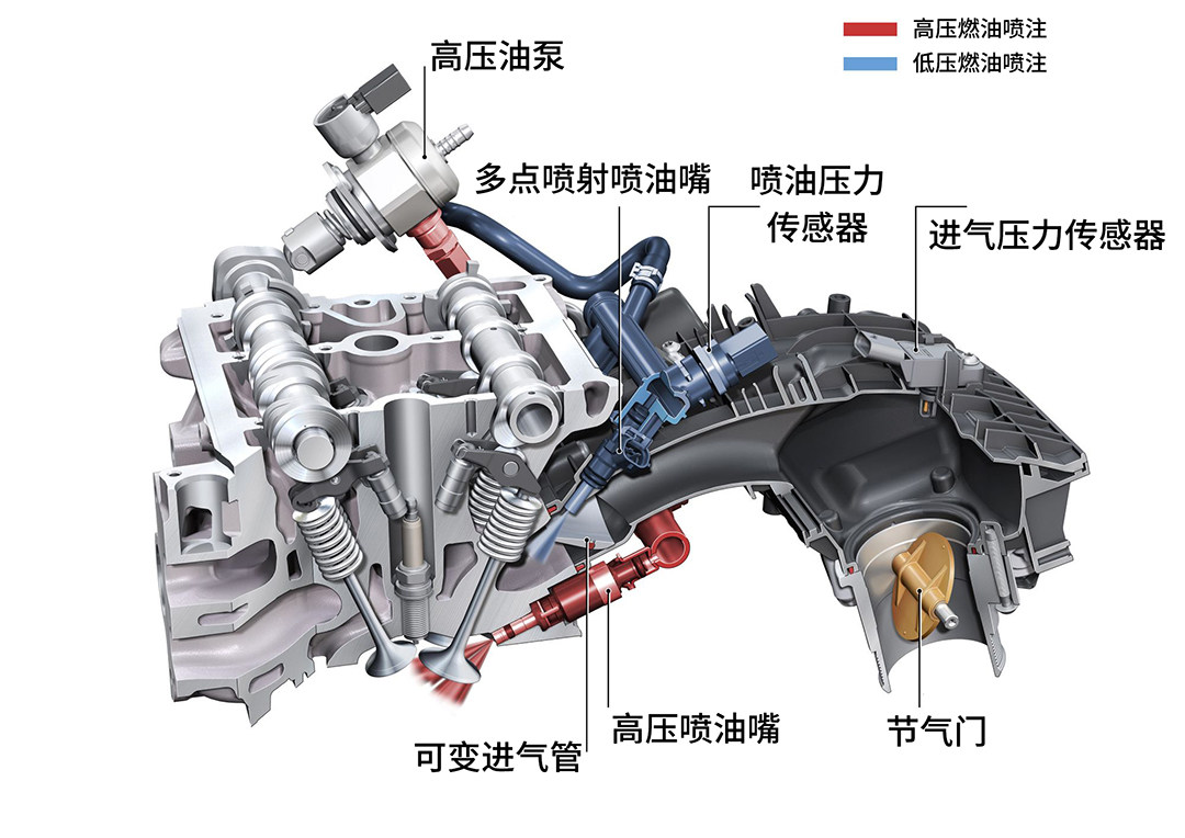 那缸内直喷和歧管喷射都有各自的优缺点,有什么好办法综合起来呢?答案就是混合喷射。