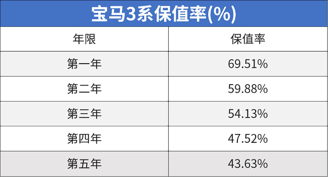 而更值得一提的是在高配车型上,宝马3系还提供了运动套装版,免去了热衷改装朋友们的后期改装烦恼,可玩性自然也就不用说了,关键它还兼具了日常家用的实用性,空间够宽敞。不过,庞大的消费者群体在带来巨大市场保有量的同时也带来了相对比较低的保值率,到了第五年仅仅剩下43.63%,折旧率非常高。目前,二手宝马3系车龄在8-10年的内市场平均指导价9万-12万左右,价格是挺亲民的,但后期的小问题可能也比较多,所以在维修保养方面的经济支出会比较高,真要买确实也需要认真考虑下。