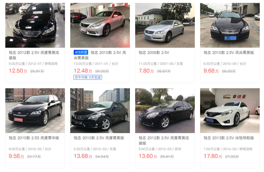 锐志自进入中国市场以后,就依借雄厚的实力和巨大的改装潜力赢得了广大消费者的喜欢,然在市期间虽改款过多次,但是从没有换代,和酷派相同,现在锐志也是已经停产。不过话说回来,锐志技术固然比较老旧,但机械性能非常的出色,而且保值率还相当高,作为跑车,到第五年还有53%左右的保值率也是相当不易。目前在二手车市场,10万上下的的购车预算,可以买到年限在6-8年左右的锐志,车型相对来说可能比较老旧些。