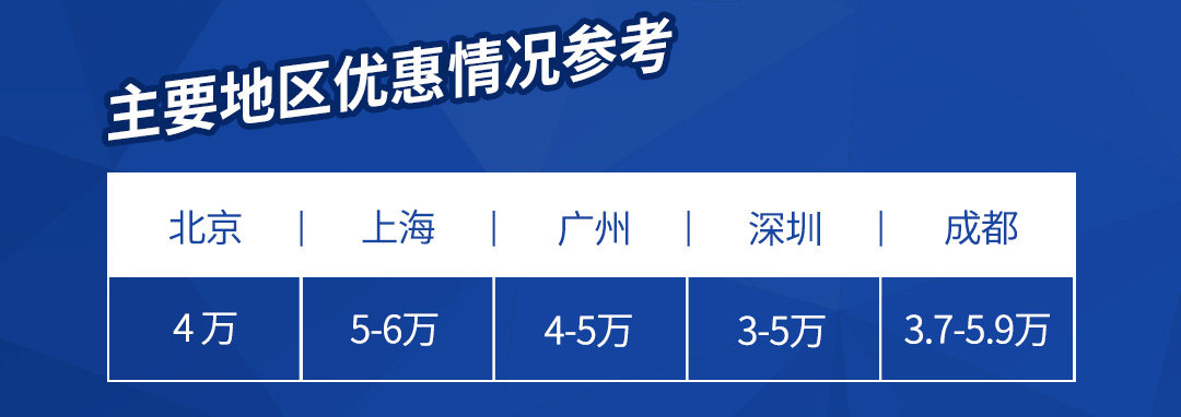 优惠详情:在北京、上海、广州地区都为现金优惠,在深圳地区需要店内上保险、店内贷款、店内置换、需购买精品等附加条件。成都地区则只需店内上保险、店内贷款、店内上牌。