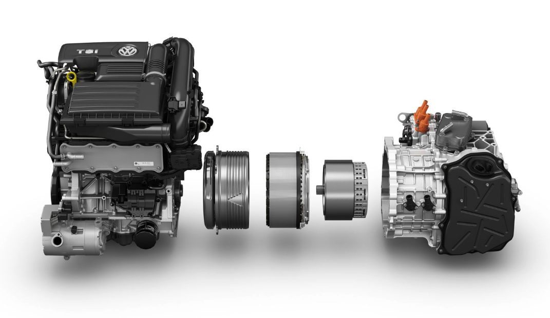 并联式其实也分为几种,帕萨特插电混动采用的是两个离合器的并联式混合动力驱动系统,电机布置在发动机和变速箱之间,电机与发动机之间有一个离合器,变速箱与电机之间又有一个离合器。只要断开电机与发动机之间的离合器,就可以实现纯电动驾驶,在刹车时电机又可以充分回收制动能量。如果发动机与电机之间没有离合器,纯电动行驶时电机既要驱动车辆还要带动发动机,所以效率不高。由于帕萨特插电混动用的是双离合变速箱,加上电机与发动机之间的离合器后又被称作是三离合。
