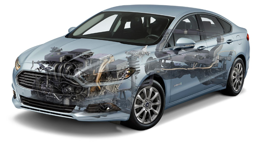 福特并没有像欧洲厂商那样采用并联式混合动力系统,而是为蒙迪欧配备了效率更高的功率分流式混合动力系统,它的结构与丰田THS颇为相似。简单的说,蒙迪欧插电混动既可以像增程式电动车那样让发动机发电使车辆纯电动行驶,又可以让发动机与电机合力输出,由于发动机转速与电机转速不固定,所以发动机可以保持在最高效的工况下运转。