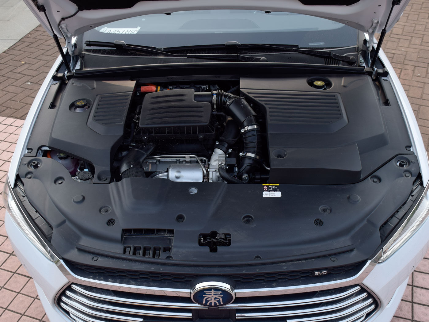 秦Pro DM把原来的发动机启动机升级成了BSG电机(发电启动一体式电机),另一个驱动电机并联布置在变速箱的输出轴上,按照欧洲厂商的方法区分就是P0+P3的结构。秦Pro DM之所以加速快,很大一部分功劳都要归功于这台大功率驱动电机,这台电机的动力基本和一台大众EA211 1.4T发动机相当。大功率电机再加上1.5T发动机,使得发动机加电机的系统总功率达到了294ps,总扭矩417N·m,账面数据比宝马7系2.0T还要高。