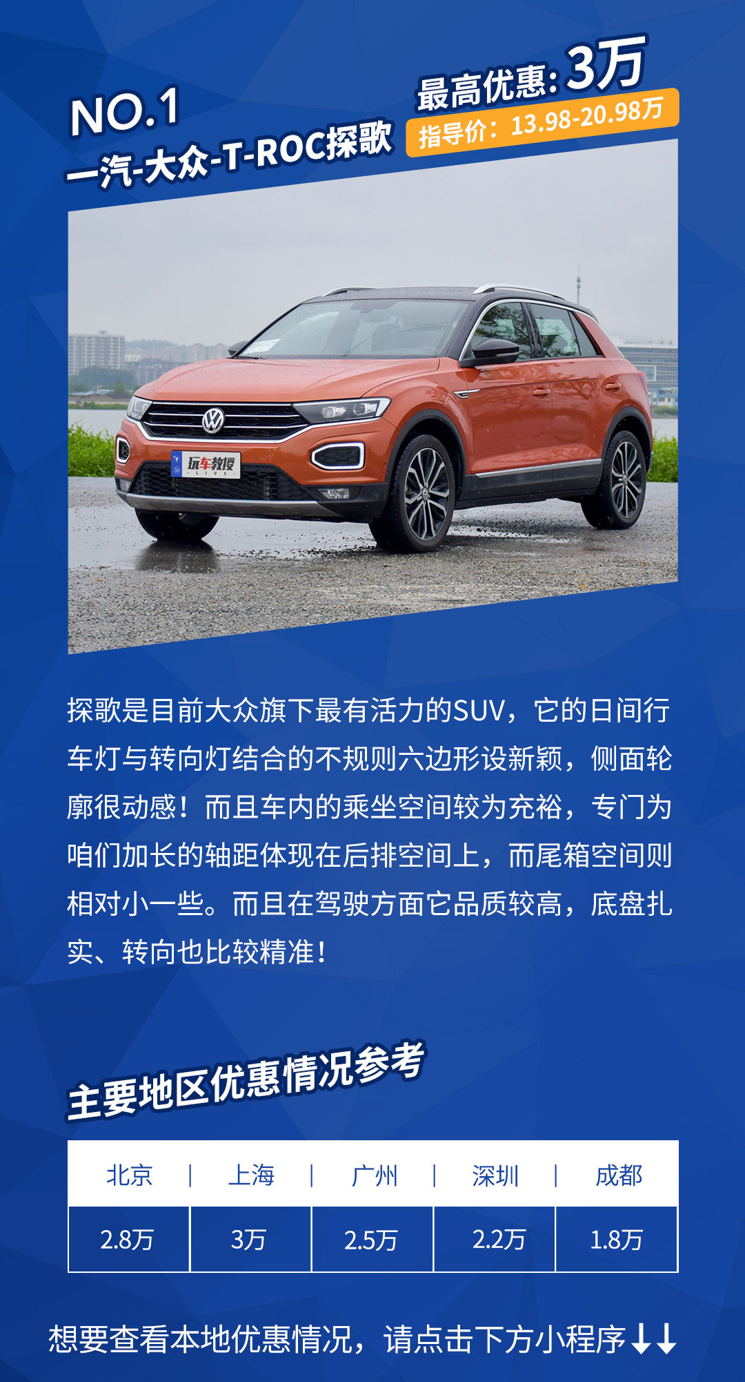 目前这两个级别共6款车型都给出了可观的优惠,它们在优惠过后的性价比都表现不错!而像凌渡、威朗、探歌这三款有着大幅度优惠的车型值得年轻消费者多多关注!