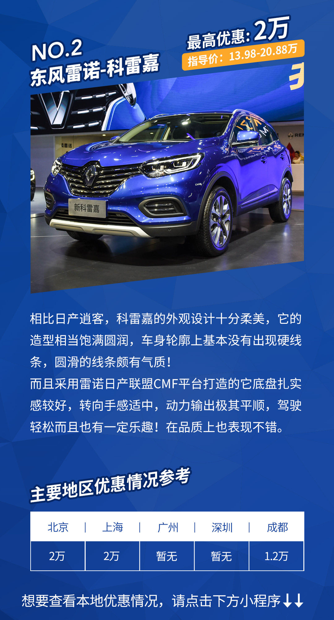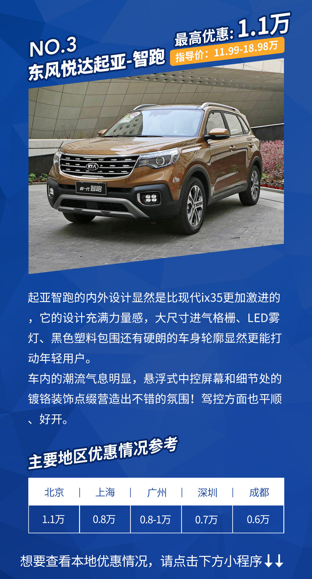 优惠详情:北京、上海、广州、深圳、成都地区的大部分4S店都为现金优惠,优惠幅度足够大,性价比也很不错!