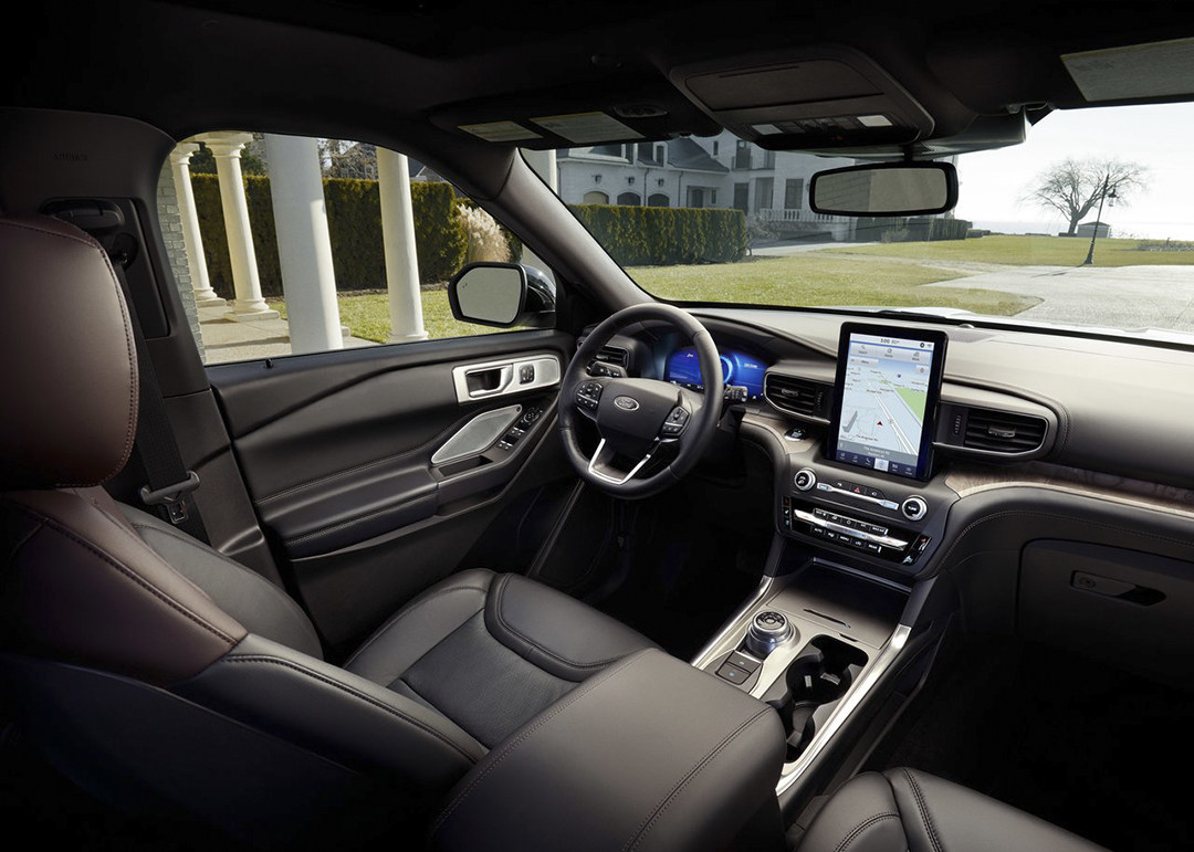 比起现款的内饰,全新一代探险者的内饰质感和时尚感有了不少的提升;对称式的设计、木纹等装饰材料点缀的中控台,档次感不错。而内饰最为抢眼的还数10.1英寸的竖向中控屏,再加上12.3英寸液晶仪表,科技氛围浓郁。总体来说,比现款内饰来得更具吸引力。