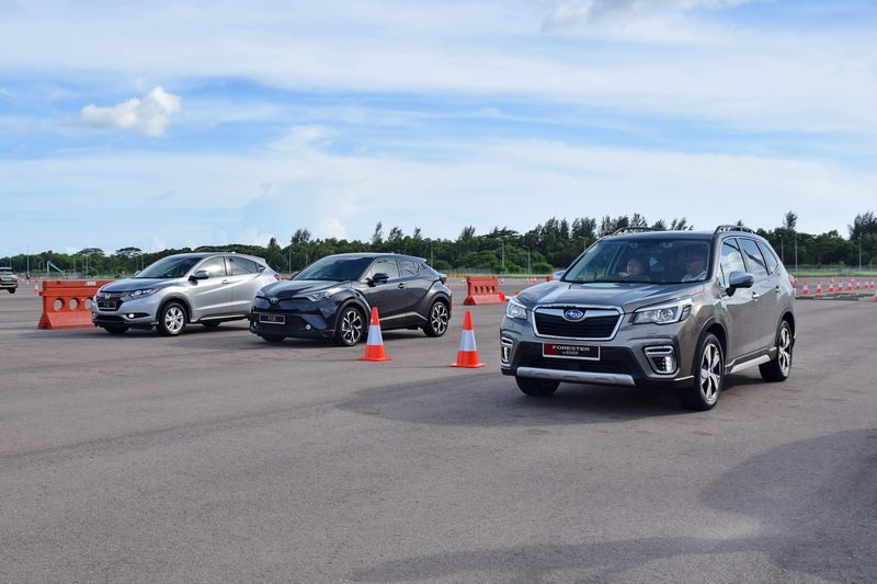 随后,我们前往场地试驾森林人e-BOXER/C-HR hybrid/缤智 hybrid。国内的读者可能认为斯巴鲁森林人跟另两款车型没有可比性,但是放到新加坡里,这就不一定了。