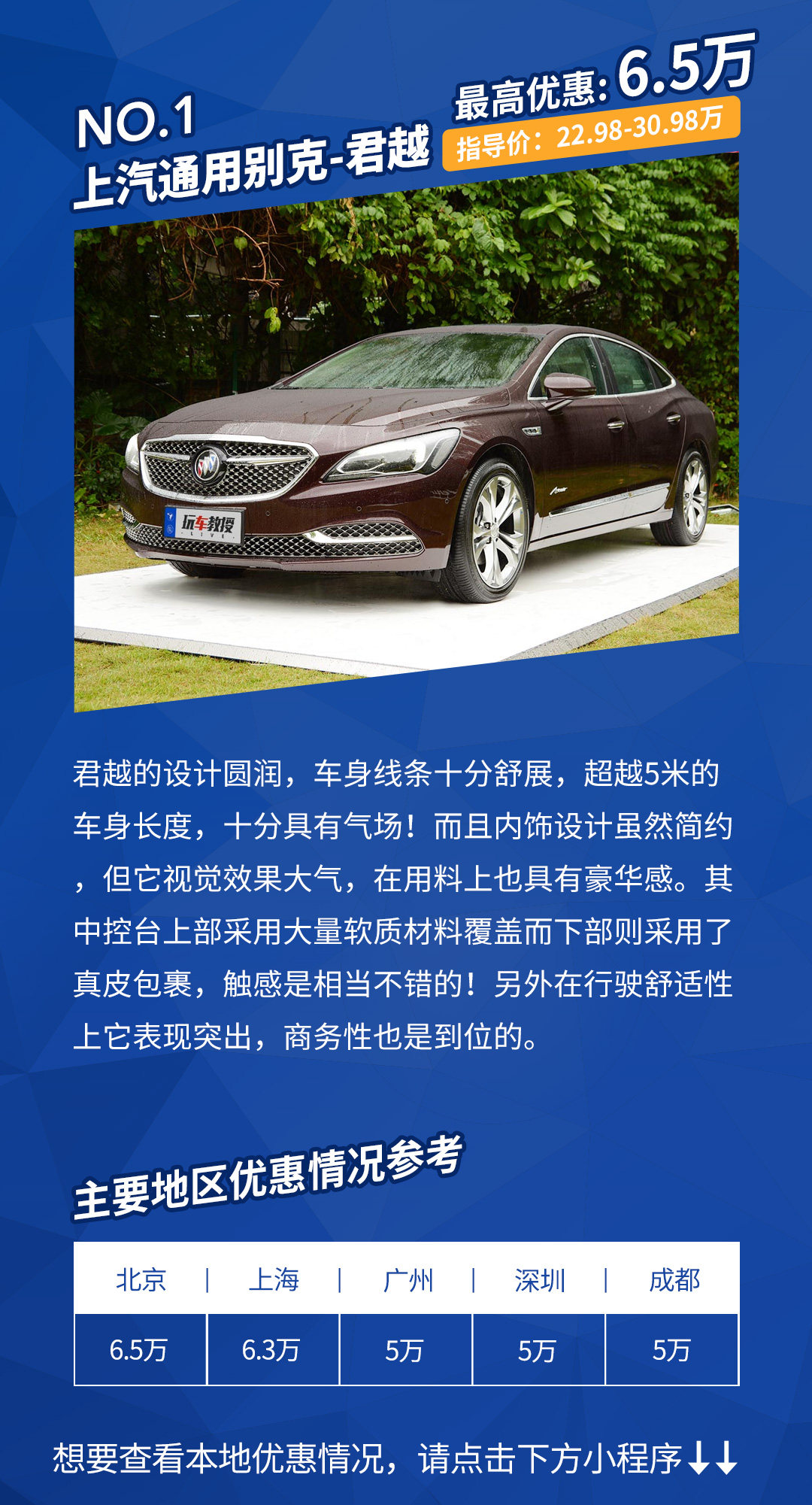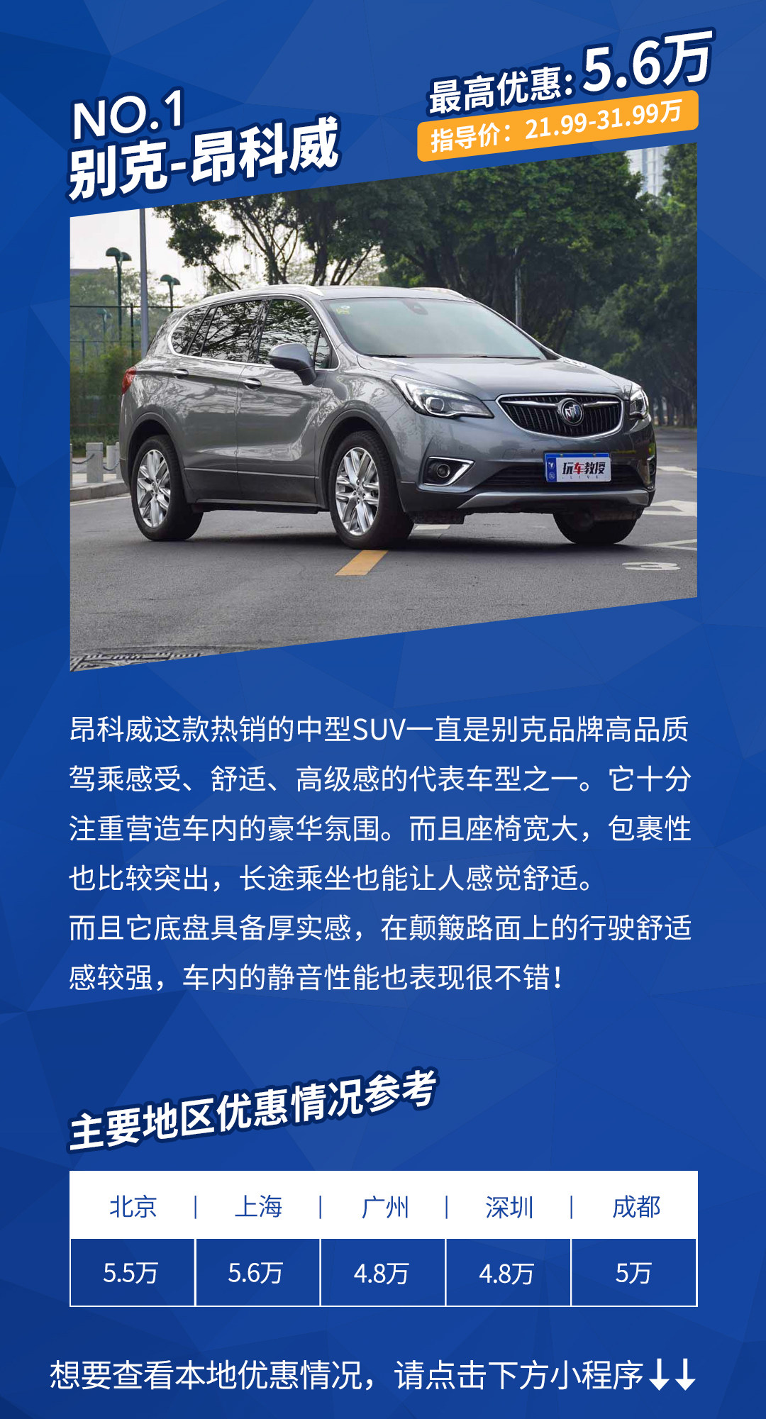 今天介绍的多款车型看上去都特别体面,三款中大型轿车还具有一定的商务属性。而别克君越、昂科威给出的优惠最为突出,值得大家多去体验和了解!