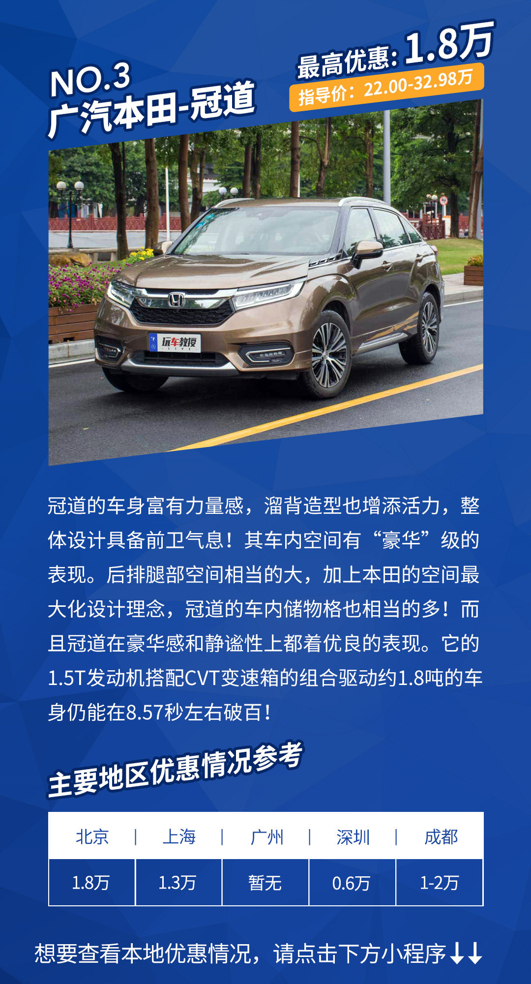适合人群:对本田造车理念高度认同,需求动力、空间和较低油耗的消费者。