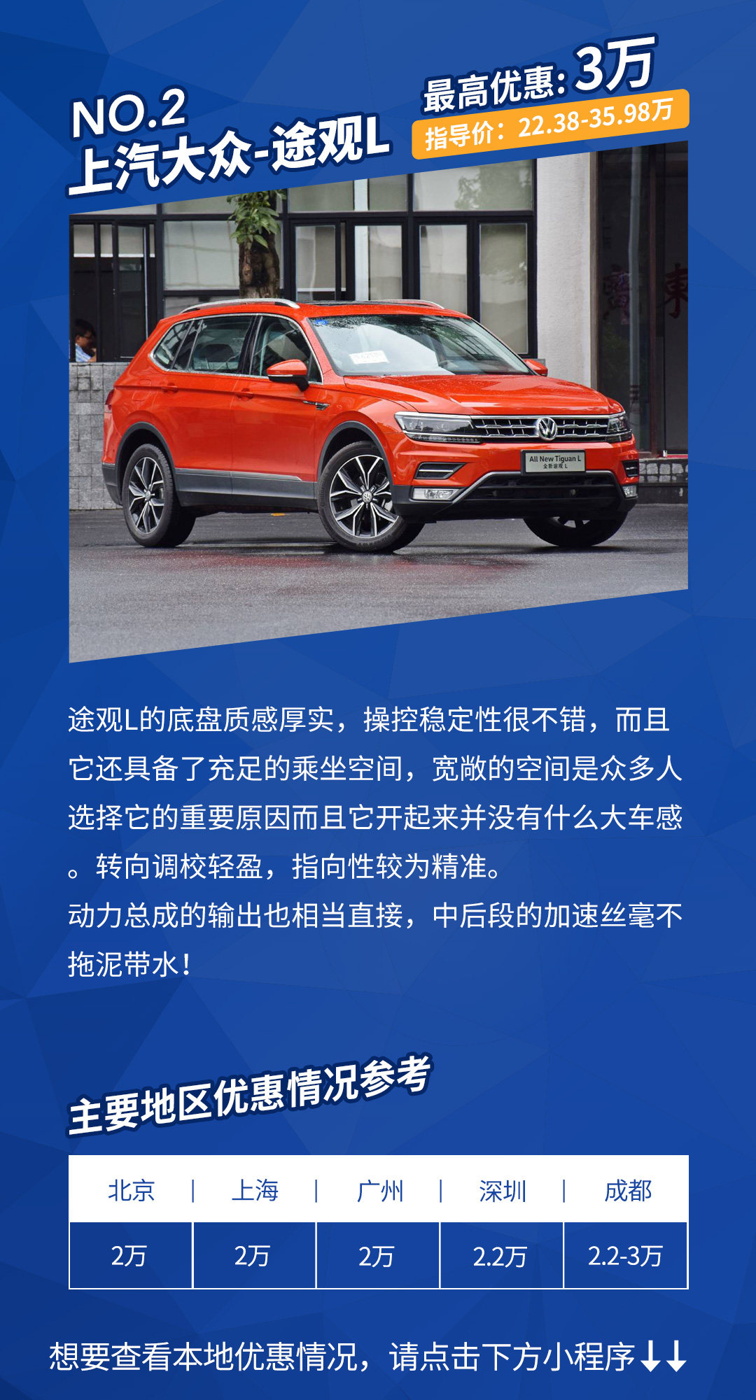 优惠详情:北京、广州、上海、深圳地区大部分4S店为现金优惠,成都地区则需在店内上保险、上牌。