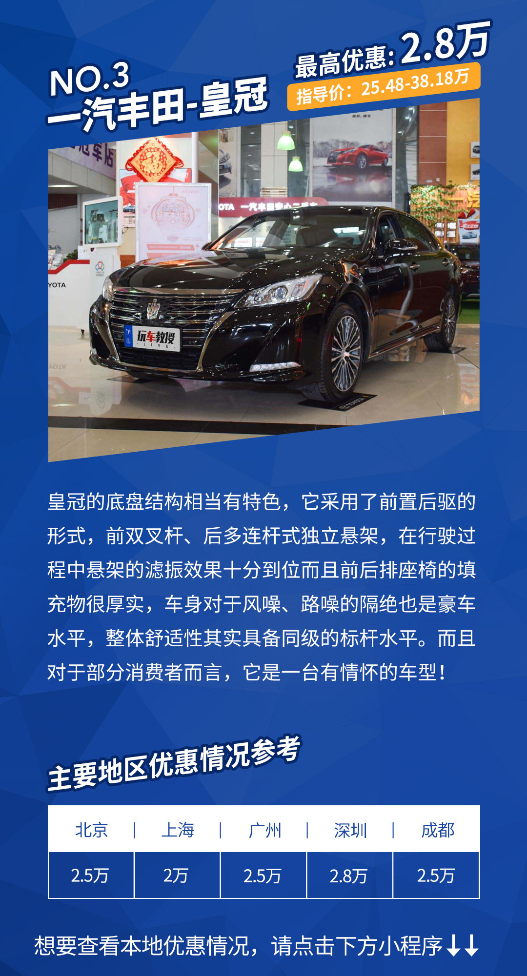 适合人群:高度认可丰田皇冠可靠品质、豪华质感、行驶舒适性的家庭用户。