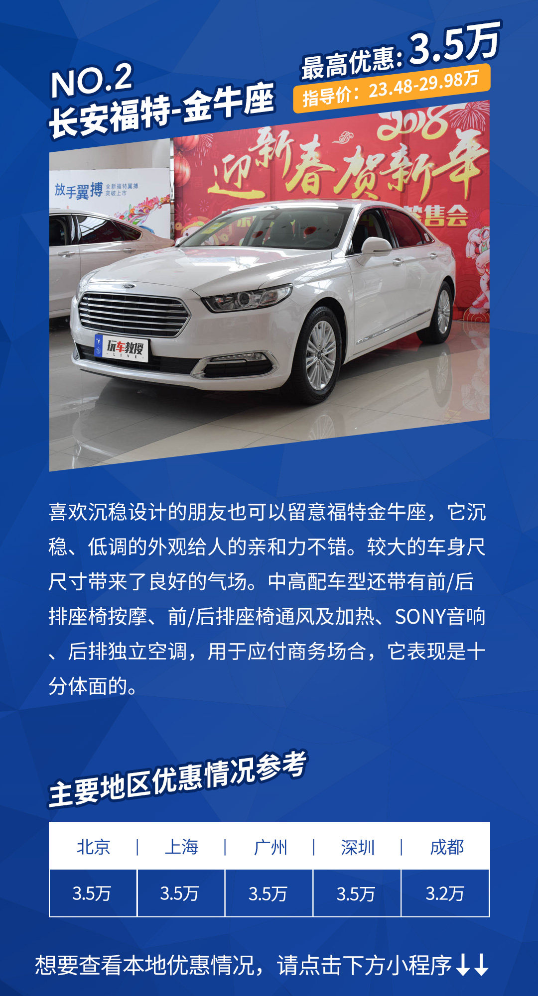 优惠详情:在北京只需要店里上保险和持本地牌照,上海、成都为现金优惠,广州、深圳需加装饰、店内上保险、店内上牌。