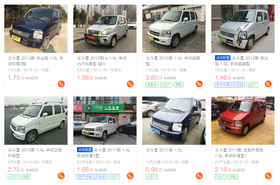 有没有看玩车TV-袁启俊的玩车时光机?改装的北斗星真的非常推荐大家看一看。北斗星好处在于价格便宜,1万左右能够买的二手车真的不多了。对于这辆车你真的不能有太多的要求,毕竟便宜定位决定了一切,个别车上的安全气囊能否弹出也是个问题。1.0L的发动机很省油,如果是日常代步加一次油够用几天,小资青年买个北斗星也是个不错的选择。