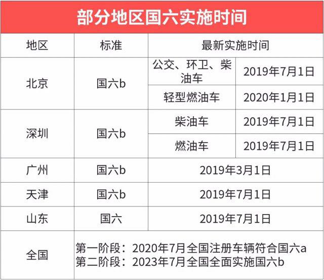 国六车型目前很多车企已经推出,像广汽丰田、上汽通用别克等都已经推出了国六车型。教授在年前对国六车型进行了起底大调查,看看你关注的车型有没有国六车型吧。(吐血暗访51家4S!原来国六新车优惠这么大!)国六什么时候执行因不同地方的政策有所不同,全国最早实施国六的城市是广州(3.1),北京深圳这些将在今年7月1日开始执行,具体的可以看看上面的图片。