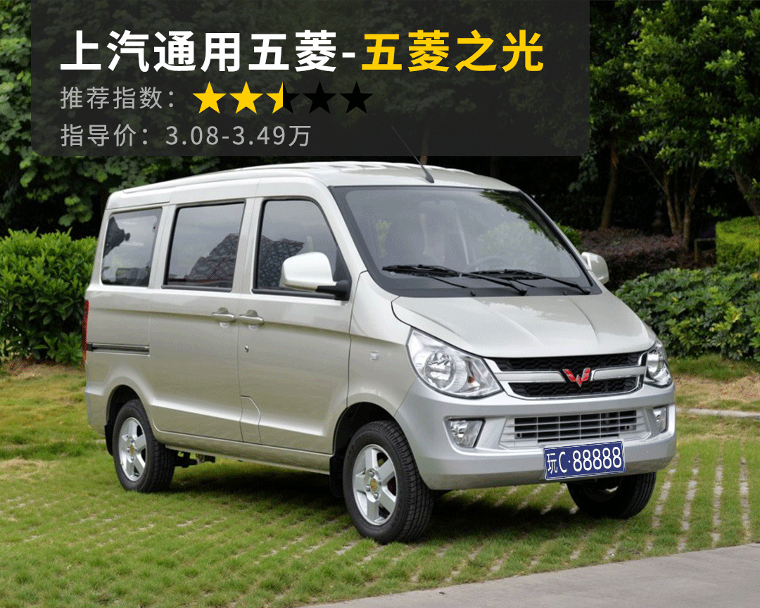 推荐理由:没错,五菱荣光V属于五菱品牌的V系列微面,而V系列都是长车头的前置引擎布局,纵使没有安全气囊,但车头缓冲区起码长了很多。另外,荣光V搭载1.5升引擎,比起五菱之光的1.2升引擎在动力上强上不少,空间上也比五菱之光更大,唯一的代价就是车长变大,没有那么灵活了。不过鉴于五菱荣光V这么实惠的售价,在微面中属于性价比很高的产品,给个五星推荐不为过。