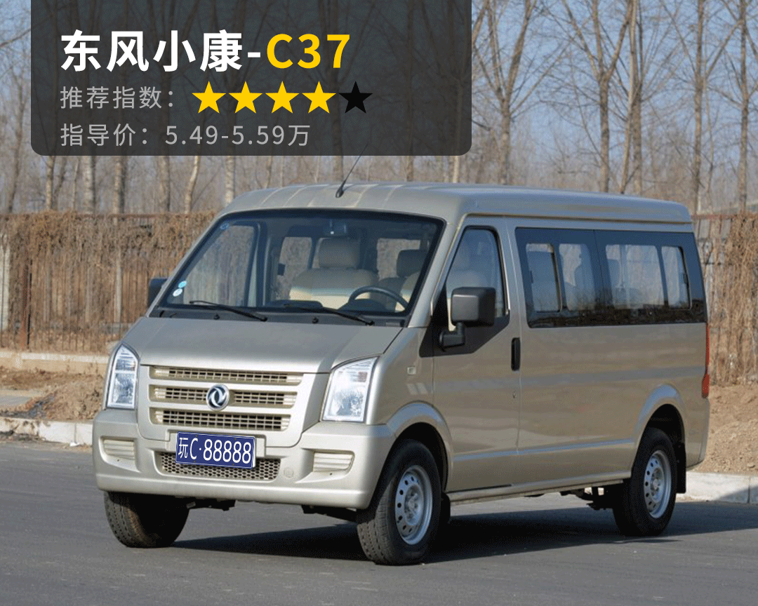 推荐理由:您若是嫌前面几款微面还是太小,那就看看最后这款东风小康C37。东风小康也是国内微面三剑客之一,C37采用轻客式的宽体大空间设计,设计上还有一丝福特新时代全顺的味道,主观感受和客观数据上都比普通微面大上一整圈,而且价格相比它的尺寸而言也不算贵,缺点就是1.5升引擎拉动这么大的车身,在满载时可能略为吃力了。但总体上,还是能给个四星推荐!