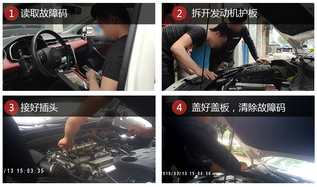来到品牌连锁维修店,这一次教授选择了比较有名的快修哥以及集群车宝,两家店的检测流程也大致相同,启动车辆后发现有故障码,随即拿电脑读出发动机缺缸故障后打开发动机盖接好插头,同样不收取检测费。