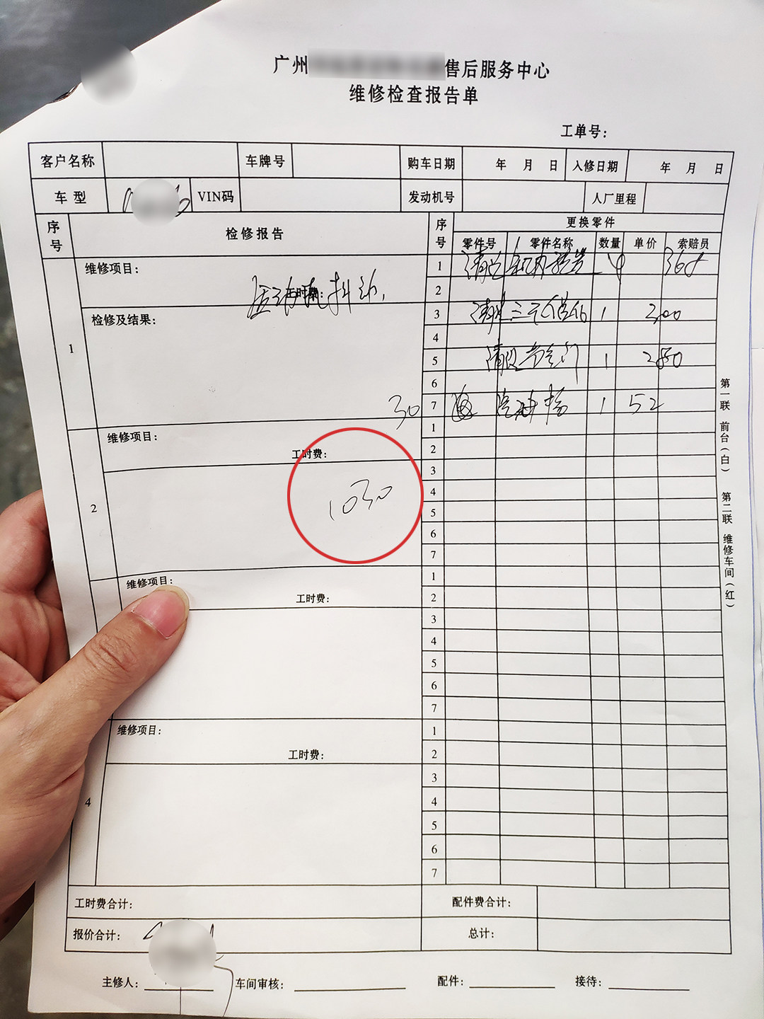 维修费用1030元↑↑↑
