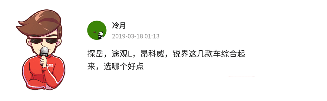 四辆车中锐界的外部尺寸和内部空间都最大,此外锐界的行驶质感以及动力表现都还不错。当然也有些问题,比如内饰做工比较粗犷,设计比较中庸等,还有强动力带来的油耗也会稍高。另外,锐界是这些车中唯一一款带7座的车型,但第三排座椅并不适合长久使用,应急倒是可以的,有这方面需求的可以考虑。