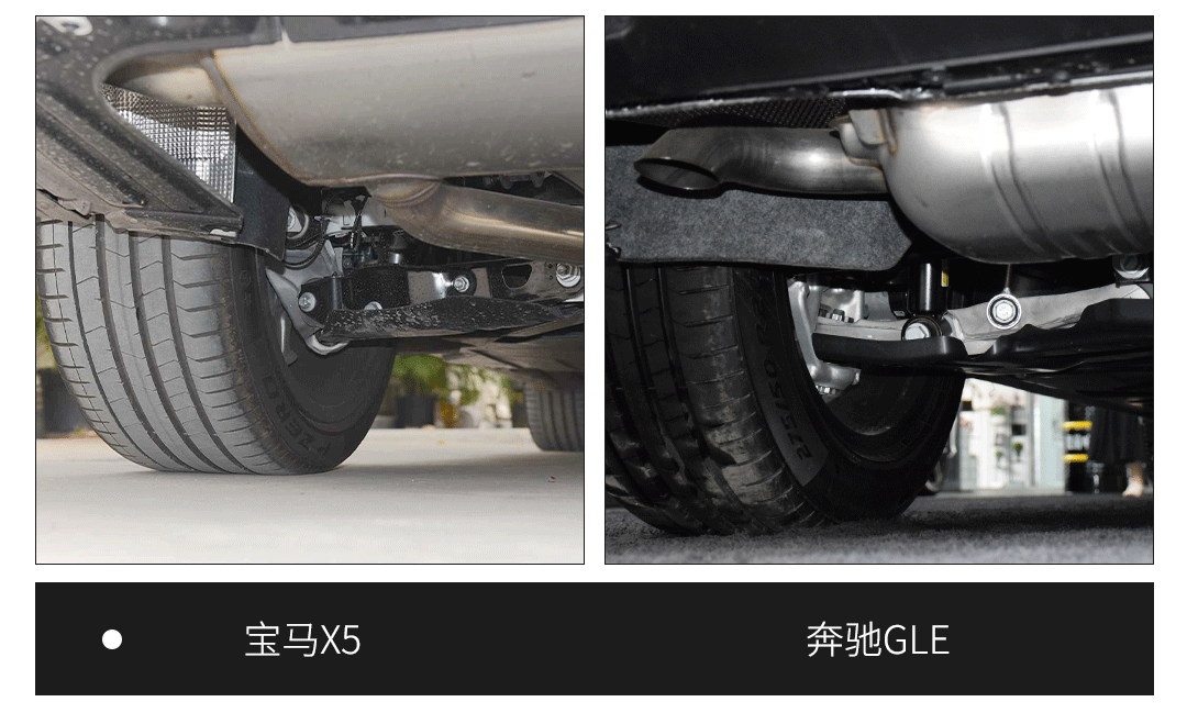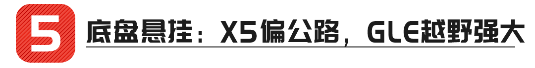二者均采用了前双叉臂+后多连杆的独立悬挂,其中X5高配车型可选装空气悬挂,而GLE由于国内配置表尚未公布,具体哪款车配备空气悬挂不得而知。但从海外资料获悉,配备空气悬挂的GLE可以通过悬挂快速高低“车震”来脱困,因此GLE的越野性能相信比X5更强,而X5则是更注重公路操控性的“SAV”。这样的定位符合两款车的车系历史传统。
