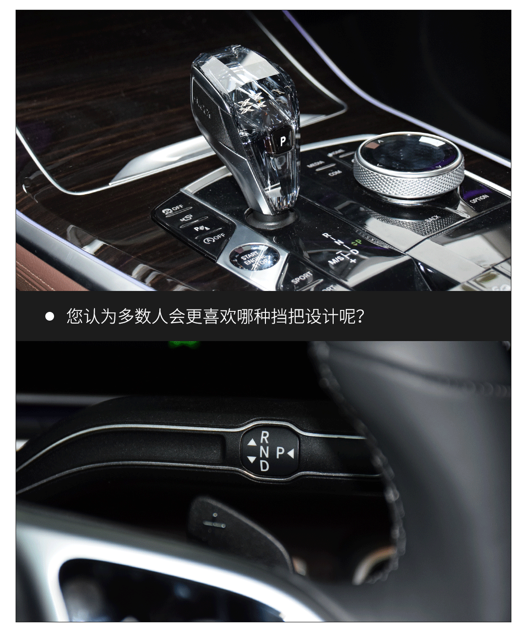 其次,X5的挡把是地挡设计,并采用水晶档把头,豪华感十足,不少人就是因为这个小细节而为X5买单;而GLE的挡把是怀挡,且教授觉得这个挡把的塑料感太强了,造型比前代GLE的怀挡还要纤细,和国产新A级的设计完全一样,不仅显得廉价,而且给人一种用力掰还生怕断了的感觉,希望厂家在中期改款时能换一种设计。