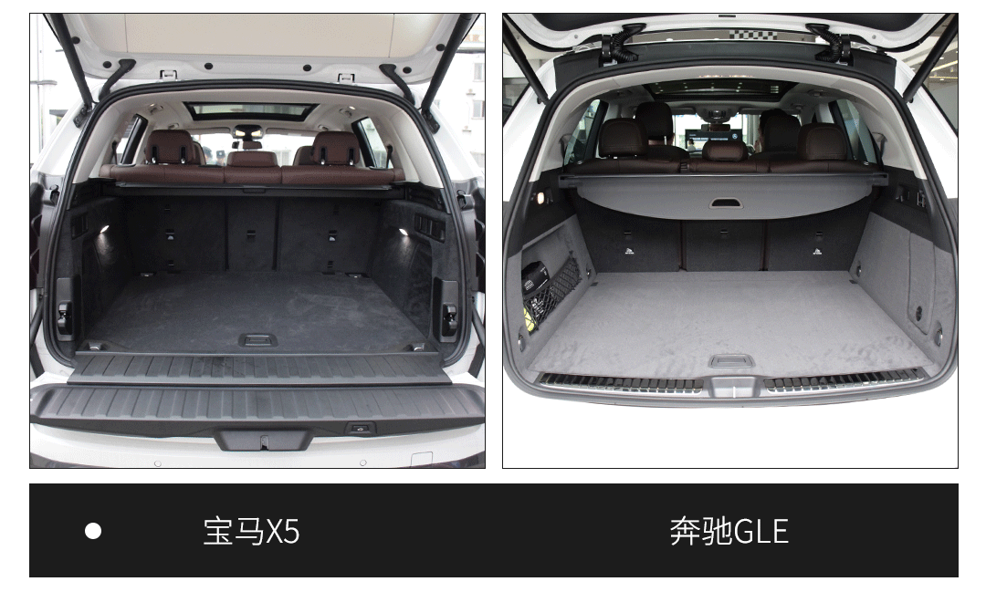 行李箱空间也是GLE略大,而且X5是上下对开的分体式尾门,操作便利性不如GLE的上开一体式尾门。此外,X5中规版目前都是5座车,不提供第三排,相信中规GLE届时也只有5座版本。