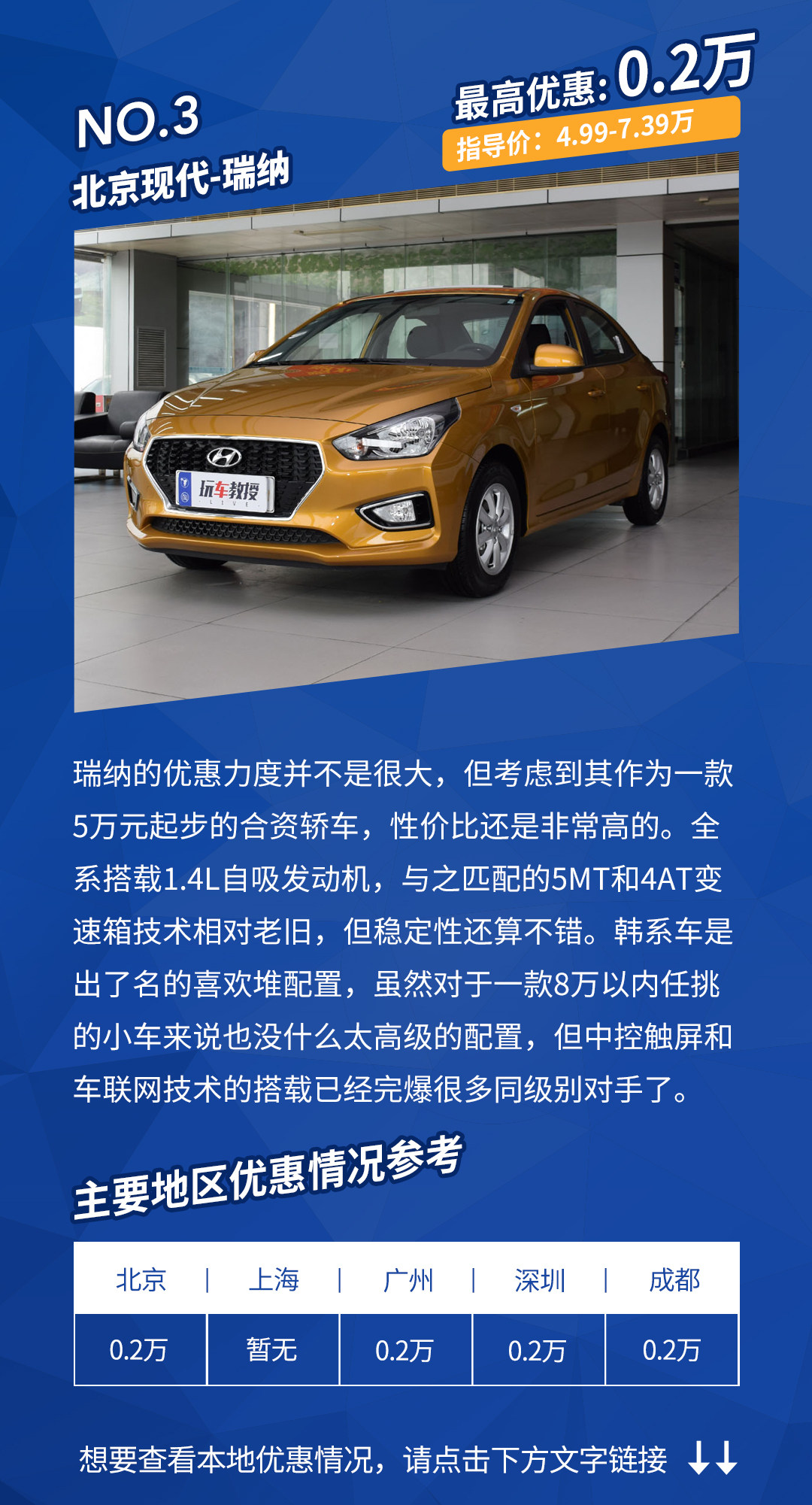 优惠详情:北京地区需要店内上保险,上海、广州、深圳、成都地区大部分4S店均为现金优惠。