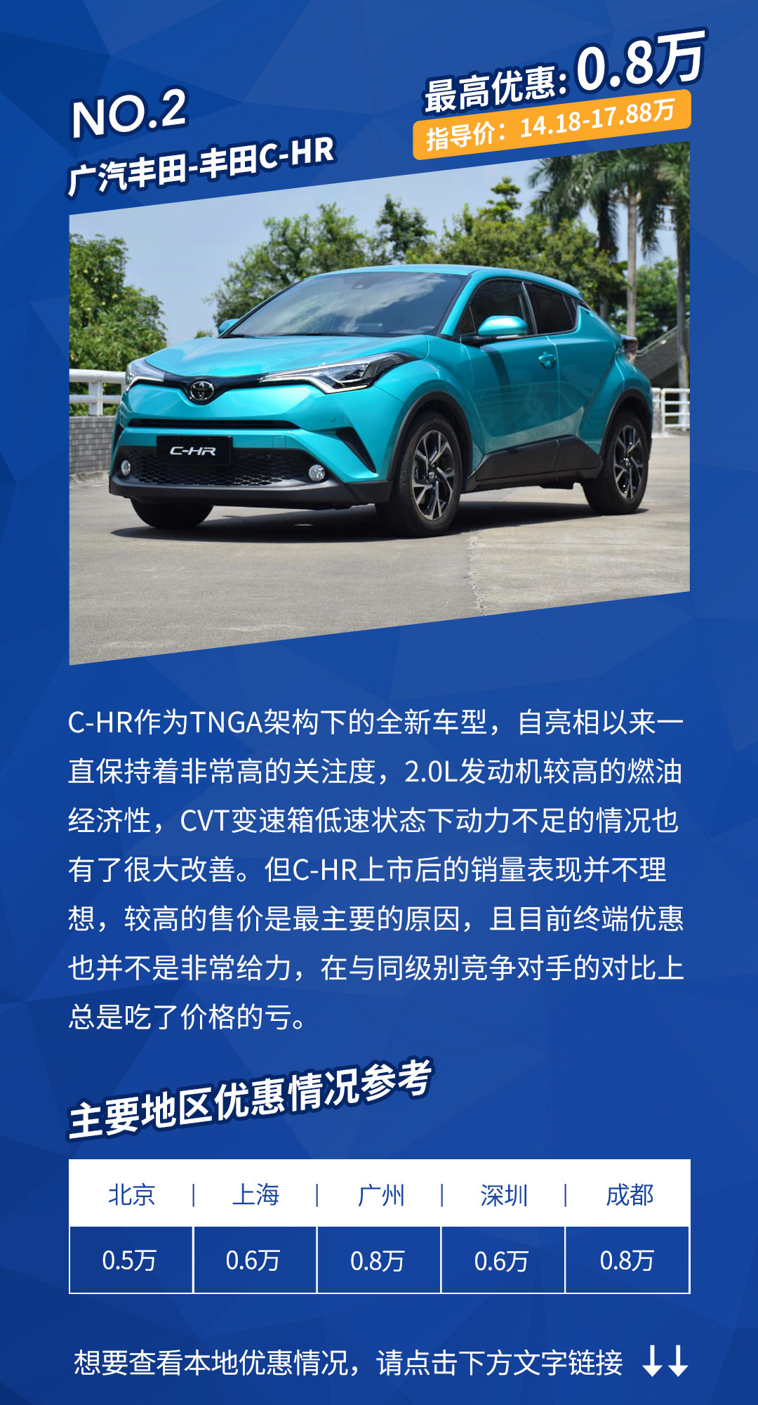 适配人群:追求出色的车辆品质,以及对C-HR个性化外观感兴趣的消费者。
