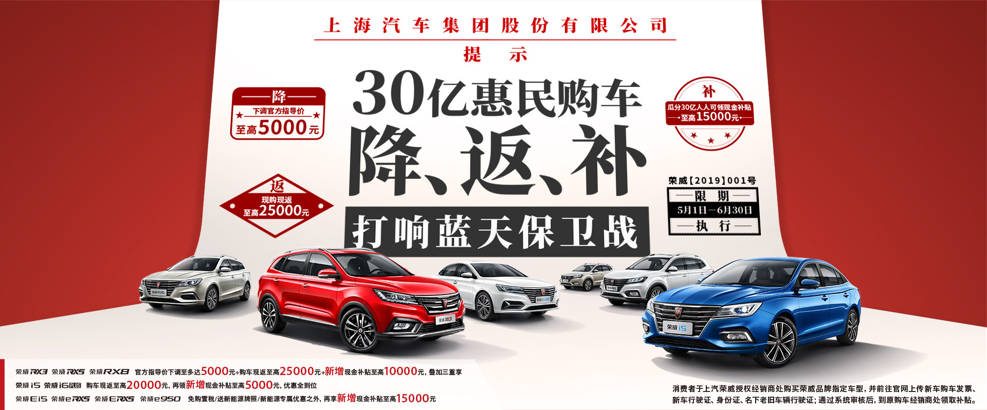 在5月1日,荣威突然宣布拿出30亿来补贴购车用户。算上官降、购车返现和补贴,荣威的SUV系列——RX3、RX5、RX8享受最高4万的优惠,荣威的轿车系列——i5、i6 PLUS享受最高2.5万的优惠,新能源系列——Ei5、eRX5、e950额外享受1.5万的补贴。